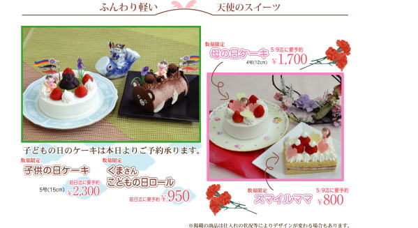 子供の日も、母の日もテルのケーキで!! ご予約承ります